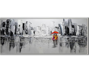 Skilled Artist Hand-painted Textured Knife Landscape Oil Painting Black and White Colors Thick Oil Knife Rain Scenery Painting