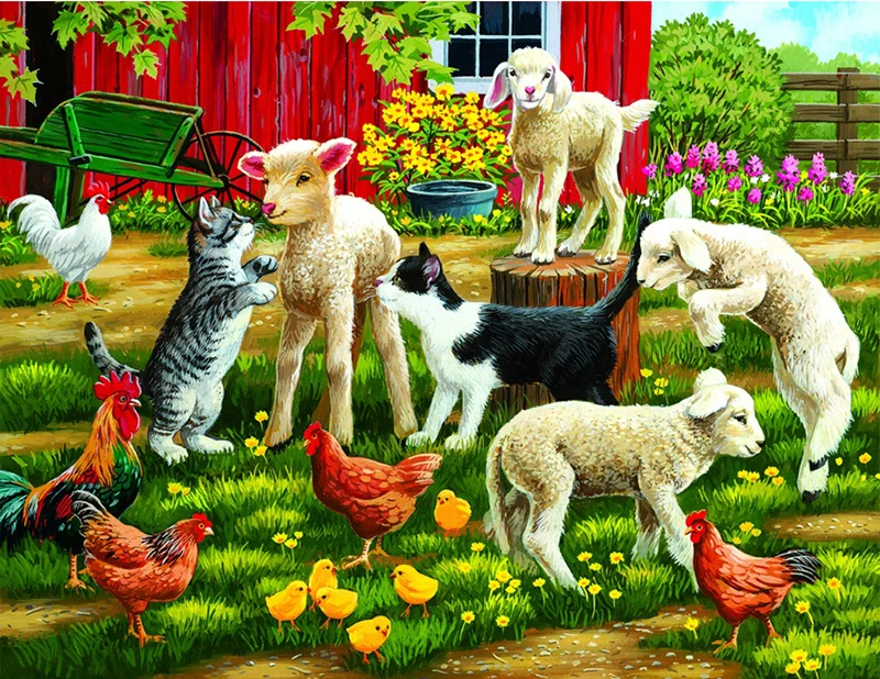 DIY 5D Diamond Painting Farm Animal Full Round Diamond Embroidery Cat Pig Horse Cross Stitch Rhinestone Kits Mosaic Home Decor