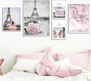 Eiffel Tower Girl Wall Art Canvas Fashion Poster Pink City Landscape Print Painting Nordic Decoration Picture Living Room Decor