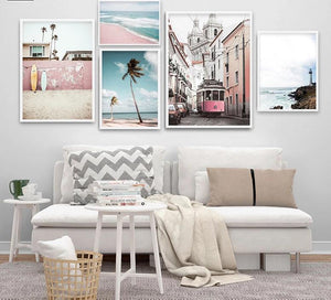 Landscape Canvas Poster Nordic Decoration Bus Ocean Beach Wall Art Print Painting Decorative Picture Scandinavian Home Decor