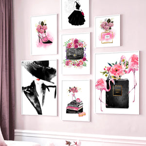Perfume Flower Book High Heels Bag Girl Wall Art Canvas Painting Nordic Posters And Prints Wall Pictures For Living Room Decor