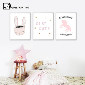 Cute Pink Unicorn Rabbit Poster Nursery Wall Art Canvas Print Minimalist Nordic Painting Picture Children Living Room Decoration