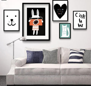 Baby Nursery Wall Art Canvas Poster Print Cartoon Rabbit Bear Painting Nordic Kids Decoration Picture Children Bedroom Decor