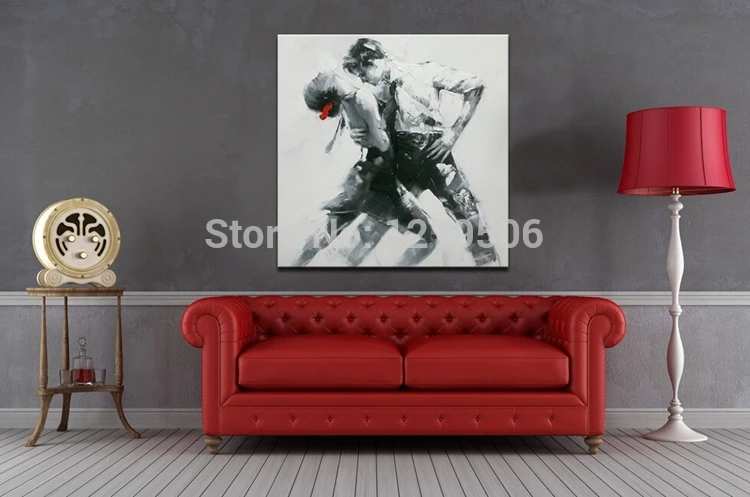 100% Handpainted Home Decoration Man and Woman Dancer Frameless Wall Art Picture By